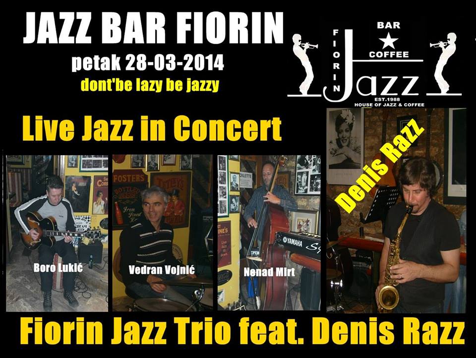 [lang_hr]U petak, 28. ožuj­ka s počet­kom u 21 sat, odvi­ja se Live In Jazz Concert u Jazz Baru Fiorin. Mainstream jazz izvo­de Denis Razz, Vedran Vojnić, Nenad Mirt i Boro Lukić.[/lang_hr]
