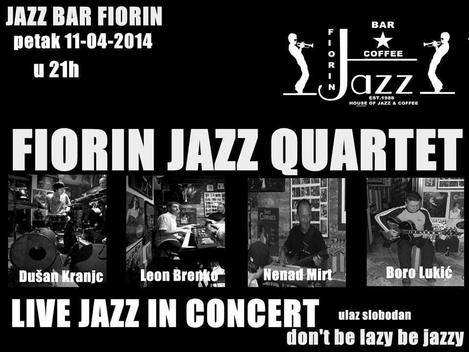 [lang_hr]Jazz Bar Fiorin organizira Live In Jazz Concert ovog petka, 11. travnja u 21 sat, a nastupit će Fiorin Jazz Quartet kojeg čine Dušan Kranjc, Leon Brenko, Nenad Mirt i Boro Lukić. Ulaz je slobodan.[/lang_hr]