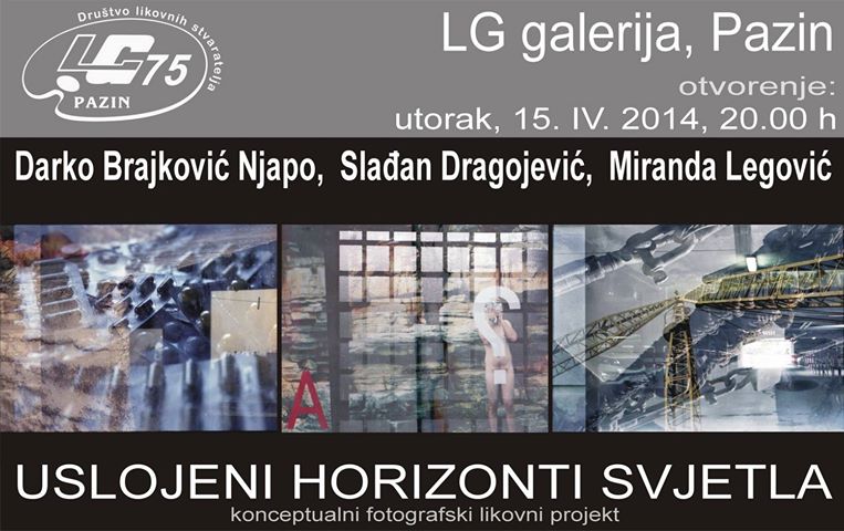 [lang_hr]U pazinskoj LG galeriji, 15. travnja u 20 sati, otvara se izložba i predstavlja se konceptualni fotografski likovni projekt “Uslojeni horizonti svjetla” autora Darka Brajkovića Njape, Slađana Dragojevića i Mirande Legović. Projekt će u prisustvu autora predstaviti Eugen Borkovsky. [/lang_hr]