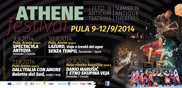 [lang_it]Pola ospiterà, dal 9 al 12 settembre, la manifestazione “Athene festival – Estate nei teatri antichi”. Il Museo archeologico dell’Istria e la Città di Pola offriranno agli ospiti i propri teatri antichi, l’Arena e il Piccolo Teatro Romano, come palcoscenici del ricco programma di questo Festival internazionale.