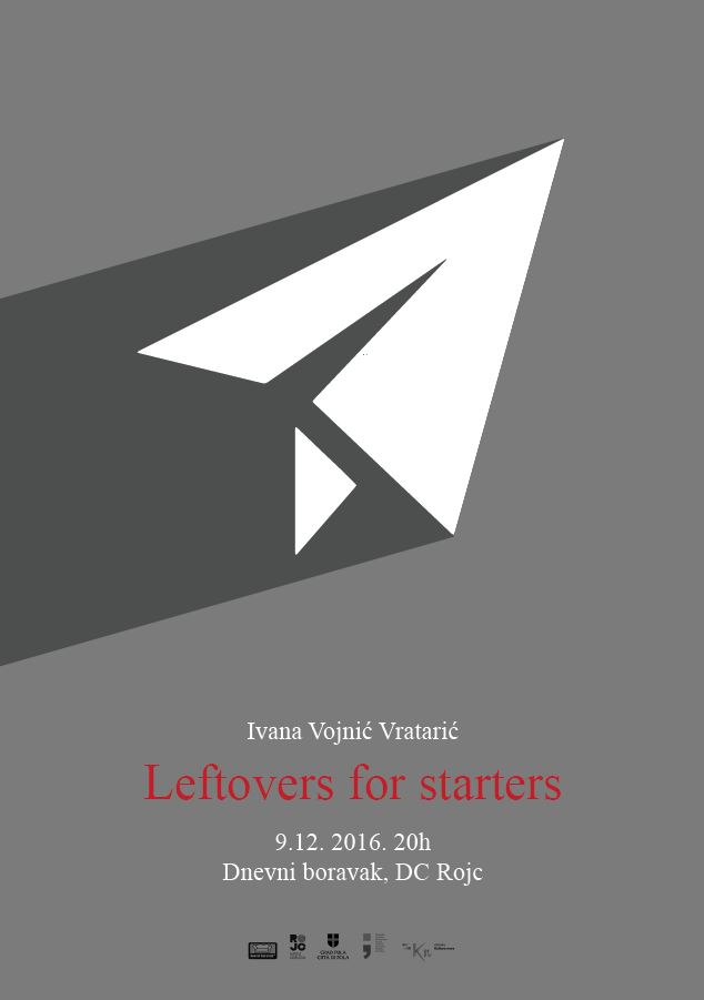 Izložba Ivane Vojnić Vratarić “Leftovers for starters” bit će otvorena u petak 9. prosinca u 20 sati u Dnevnom boravku Rojca. Autorica će se predstaviti kroz seriju novih i starijih slika i pokoju site-specific intervenciju u samom prostoru Dnevnog boravka.