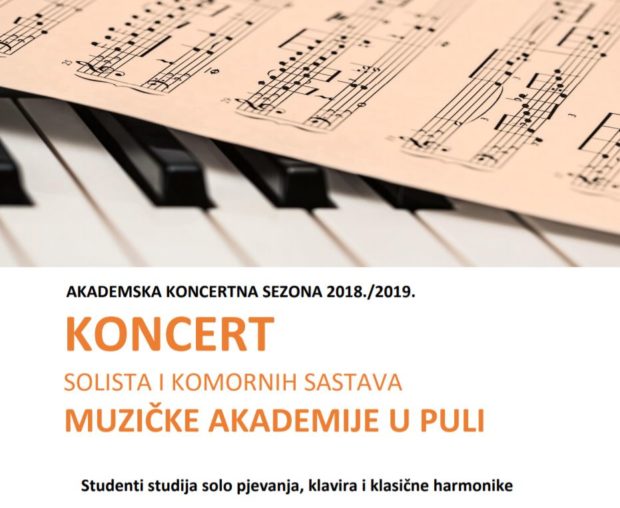 U okviru akademske koncertne sezone, a u suradnji sa Istarskim narodnim kazalištem Gradskim kazalištem Pula, u ponedjeljak 4. veljače s početkom u 19 sati, na Velikoj sceni održat će se koncert studenata solo pjevanja, klavira i klasične harmonike Muzičke akademije u Puli. Na programu su djela skladatelja raznih stilskih razdoblja i epoha. Ulaz je slobodan.