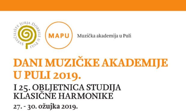 Koncerti Dana Muzičke akademije u Puli održavat će se u INK‑u, a prvi na redu, koncert Muzičke akademije u Puli je u četvrtak 28. ožujka u 20 sati. U petak 29. ožujka u 12 sati na programu je „Filmska glazbena avantura: nastavni projekt studenata Odsjeka za glazbenu pedagogiju“, dok je u će u 20 sati u sklopu 25. obljetnice studija klasične harmonike nastupiti ukrajinski harmonikaš Pavlo Fenjuk. U subotu 30. ožujka u 20 sati na programu je koncert studenata i profesora Muzičke akademije Sarajevo.
