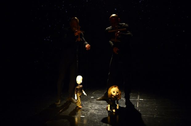 Performans je kratko trajao i naveo na kontemplaciju, a potom smo ogledali predstavu „Ptice u kući“ u izvedbi VHV Petrovca i Next Picture Praguea. Njezino stvaranje financirala je Češka, ostvarena je u Srbiji, a cijeli izvršni tim sastoji se od Slovaka. Autor originalne glazbe je kompozitor Jaroslav Zima, dok su glumci Jan Sklenar i Peter Serge Butko. Za razliku od većine predstava na ovogodišnjem PUF‑u koje su podosta minimalističke, u ovoj je scenografija obogaćena raskošnom video projekcijom. U skladu s naslovom predstave dominira motiv ptice u svim kreativnim i raznovrsnim izdanjima. Najprije vidimo stari jedrenjak i na pramcu pomalo nadrealno stvorenje pod bijelom tkaninom. Uskoro se pojavljuju ptice kao simbol slobode i pronalaska sebe. Čovjek je poput ptice kad uspije postići da prestane biti rob situacija s kojima se suočava i umjesto toga biva njihov rukovoditelj, imajući konce u svojim rukama i postižući visok stupanj kontrole nad okolnostima. Kako bi ta ideja kontrole bila jasnija, glumci u predstavi manipuliraju lutkama koje dolaze u nekim trenucima u odnos koji uključuje nježnost i bliskost. No od toga još je zanimljiviji kontakt koji direktno uspostavljaju lutke s glumcima, te glumci s likovima projiciranim na podlozi. Budući da je ptica tradicionalno i simbol smrti, što je također jedan oblik oslobođenja, razumljiv je smisao umiranja lutke na ptičjem krilu obasjanog crvenim reflektorom. Spomenimo da je tijekom čitave predstave prisutno jako malo svjetla; ono je načelno prigušeno, a pozornost privlači glazba koja je sanjiva i idilična, dakle doprinosi cjelokupnoj atmosferi čežnje za ljepotom slobode.