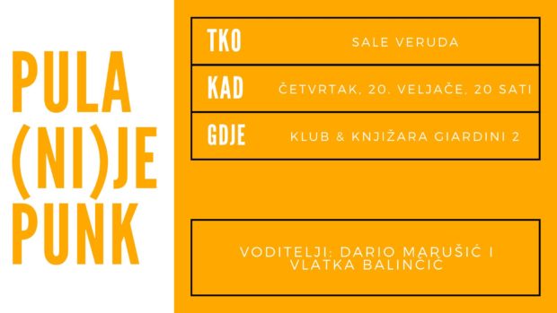 Prvi razgovor u programu Pula (ni)je punk koji spaja glazbu i književnost bit će održan u četvrtak, 20. veljače u 20 sati u pulskom Klubu & knjižari Giardini 2.