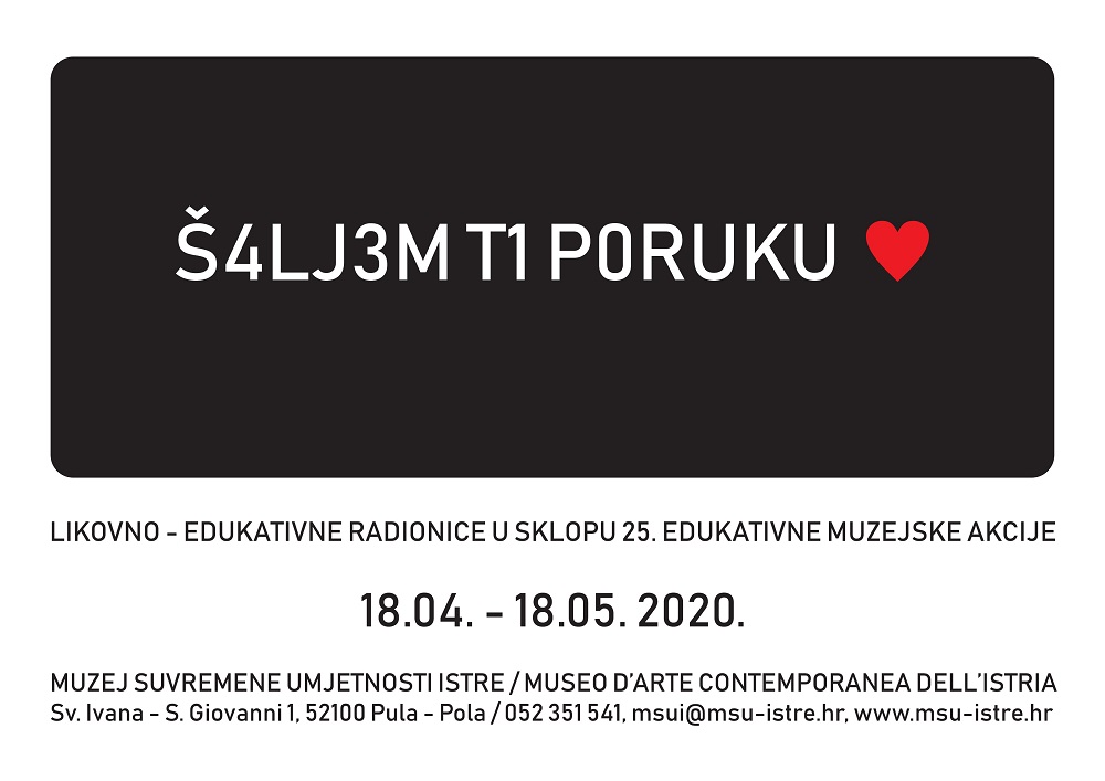 „Donosimo virtualne izložbe, rezultate 25. Edukativne muzejske akcije, otvaramo muzejsku on-line knjižnicu, a posjetitelji mogu u ponedjeljak, 18. svibnja 2020. na adresi Sv. Ivana 1, uz stalni postav pogledati i samostalnu izložbu pulske arhitektice Brede Bizjak pod nazivom „Ideogram: tijelo – kuća““, javljaju iz MSUI‑a