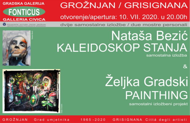 Samostalna izložba „Kaleidoskopska stanja“ Nataše Bezić i samostalna video-izložbena prezentacija „Painthing“ Željke Gradski bit će otvorene u petak, 10 srpnja u 20 sati u Gradskoj galeriji Fonticus u Grožnjanu.