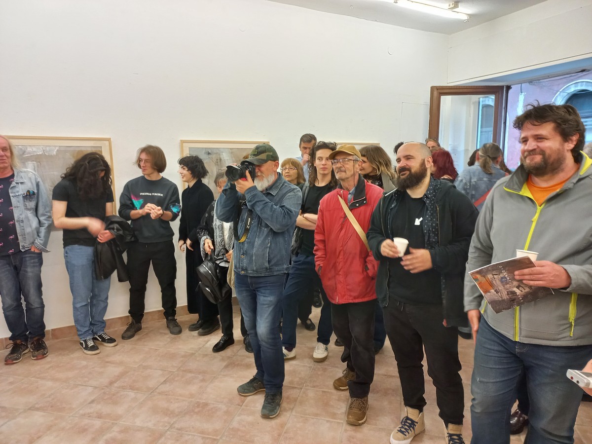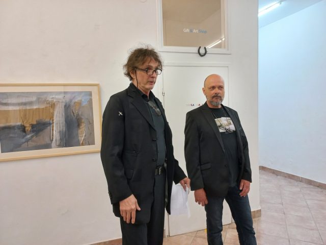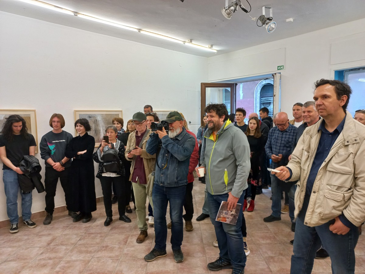 „On je samozatajan i zadnje vrijeme više se bavi intelektualnim radom nego izlagačkom djelatnošću, ali večeras napokon imamo priliku pogledati jedan dio iz ciklusa njegovih radova koje smo nazvali „Intro“. Pekica to zove crteži, ja bih rekao da su to sliko-crteži, radi se o akrilu i ugljenu na krom papiru“, kazao je Šumonja napomenuvši kako su svi radovi nastali u proljeće 2022. godine i vrlo su asketski.