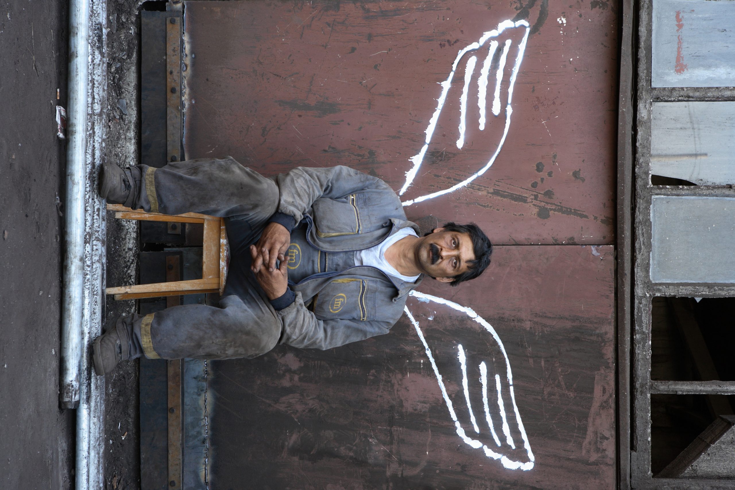 Tema slo­že­nih druš­tve­nih pro­ce­sa i tra­uma­tič­nih okol­nos­ti sva­kod­ne­vi­ce (pos)tranzicijskog vre­me­na, sve­pri­sut­na je u rado­vi­ma Igora Grubića još od 1990-ih. U mul­ti­me­dij­skom pro­jek­tu “Anđeli gara­vog lica“ (2004. – 2006.) na suges­ti­van način pro­miš­lja poli­tič­ki kon­tekst. U for­mi foto­graf­ske seri­je poeti­zi­ra por­tre­te ruda­ra iz rud­ni­ka Kolubare, doda­va­njem kri­la na sim­bo­li­čan način uzdi­že ih na razi­nu moral­ne okos­ni­ce druš­tva. (Ivana Janković i Alma Trauber, 2021.)