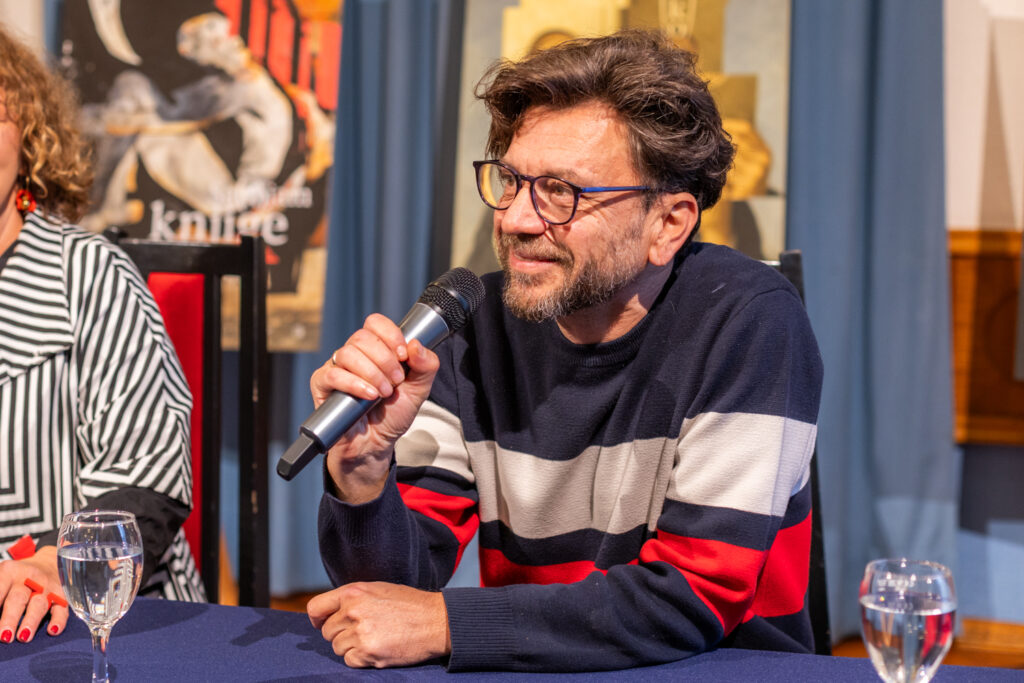 „Moj interes u oblikovanju ove izložbe je usmjeren, ne toliko prema povijesnosti, datumima i godinama, književnicima i knjževnicama, gošćama i gostima, koliko prema raznim fenomenima koje smo na Sajmu osmislili, iskušali, usudili ih se implementirati. Svaki sajam knjiga je prvenstveno orijentiran na predstavljanje autora, promocije i prodaju knjiga, no ovaj pulski Sajam je uz to težio otkrivanju nekih dodatnih elemenata koji bi događaj i promišljanje o knjizi učinili vidljivijim, komunikativnijim, više festivalskim. Pažnja se tako u kreaciji Sajma, kroz ova tri desetljeća, širila na razna područja: oblikovanje prostora, grafički dizajn, knjižne nagrade, male i velike izložbe, koncerte, režije raznih centralnih i popratnih događaja glazbeno-scenskog karaktera, filmsku umjetnost, umjetničke instalacije, fotografiju, predstave… Izložba će tako biti prikaz onoga što je pulski Sa(n)jam učinilo drukčijim od drugih knjiških manifestacija, naročito na polju vizualnih komunikacija. Nadam se da će ta isprepletenost raznih kreativnih praksi i jezika uroditi nekim novim iščitavanjem, koje bi pokazalo unutarnji karakter promišljanja i kreacije svojstvene Sajmu knjige u Istri“, kazao je Mauricio Ferlin uz izložbu „Sajam na oko“ koja će se moći razgledati do 1. veljače 2026.
