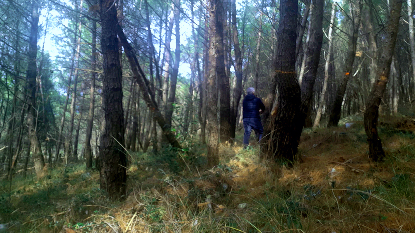 „Video ambijent „Bez naziva“, istaknutog suvremenog hrvatskog umjetnika Alena Floričića, postavljen u Galeriji Poola, sastoji se od dvije video projekcije kojima je zajednička tema, odnosno narativni subjekt – šuma. Radi se o promišljenoj ambijentalnoj instalaciji gdje se video radovi istovremeno suprotstavljaju i nadopunjuju. Konfrontiraju se sadržajem i veličinom projekcije a dopunjuju jedinstvenim motivom šume, kao i zvukom jednoličnih udaraca koji je međusobno nesinkroniziran te proizvodi zvučnu kulisu kontroliranog nereda. Velika projekcija postavljena je na bočnom zidu galerije dok je mala smještena na kraju njene uzdužne osi, u niši nasuprot ulazu.