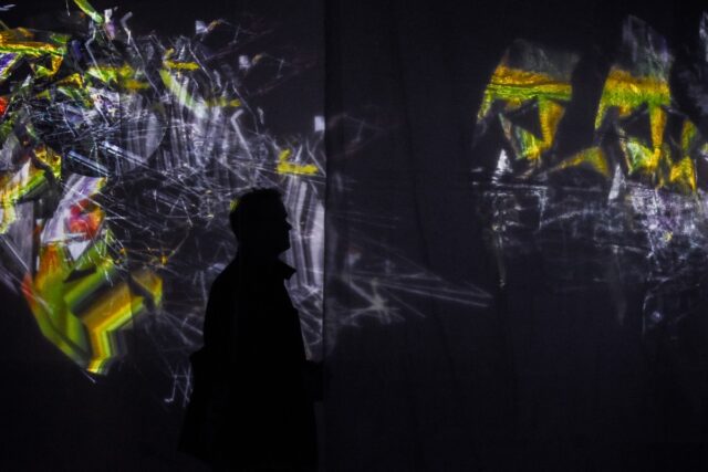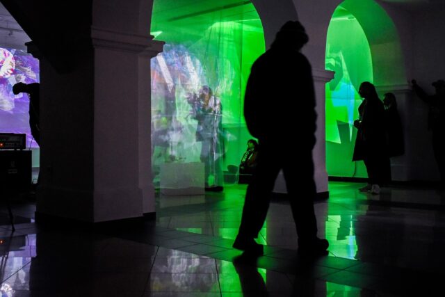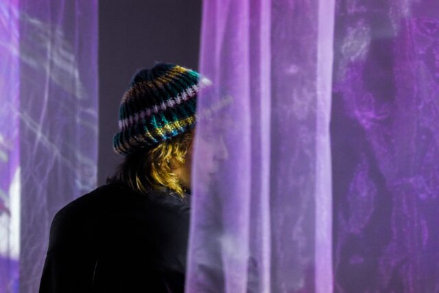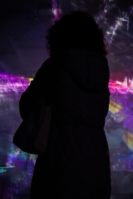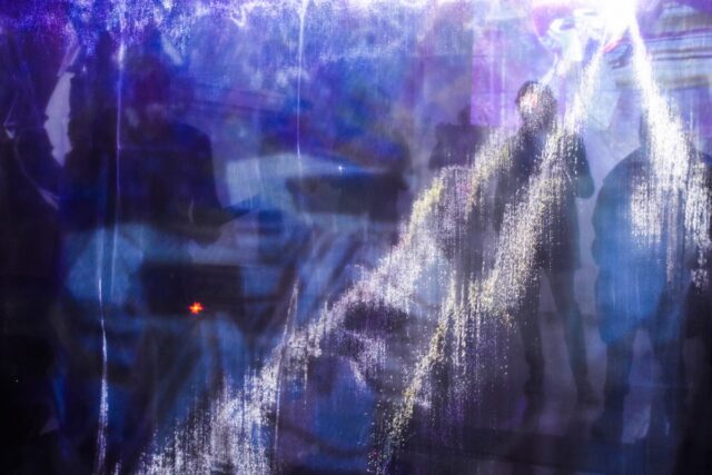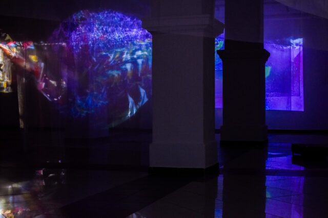 Izložena videoinstalacija pulsira unutar serije Mazurekovih Radical Chimeras, kontinuuma misaonih formi zvuka i svjetla gdje se frekvencija, boja i gesta stapaju u zračeću apstrakciju. Ovdje kozmički ostatci postaju iluminacija – nebeska buka prelomljena kroz leću pamćenja, biologije i električnih krugova. Projekcija diše, treperi, implodira – to je živa plazma električnog zvuka i vizualne vibracije, koja se prenosi iz unutarnjeg kozmosa prema kolektivnoj mrežnici. Svaki je kadar portal, svako je zujanje čestica neprevedive emocije. Mazurek ne poziva promatrača na promatranje, nego na stapanje – da se prepusti struji zračeće oluje i postane, na trenutak, dio njezine nebeske mašinerije.