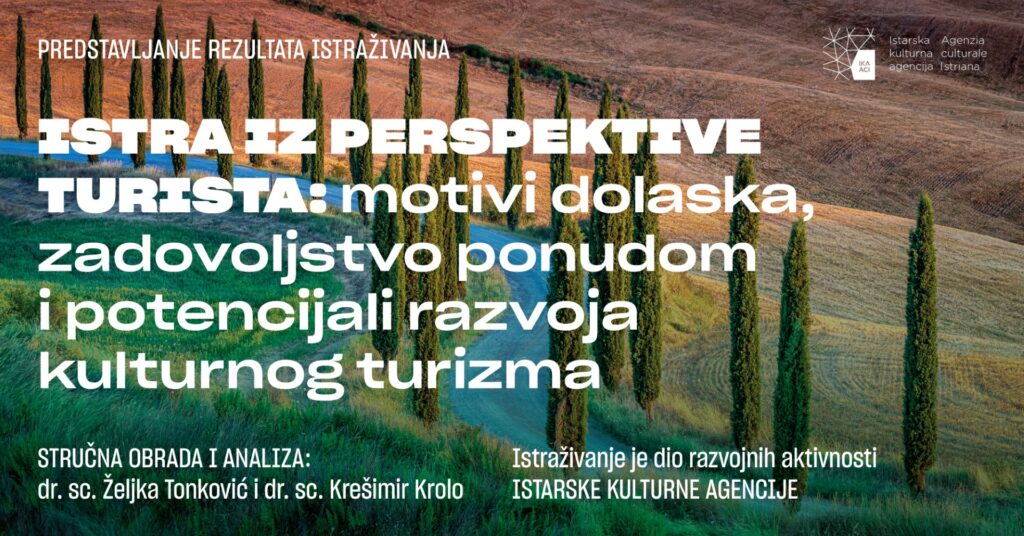 Naime, IKA – Istarska kulturna agencija provela je opsežno istraživanje o kulturnom razvoju i potencijalima kulturnog turizma u Istri te vas poziva na javno predstavljanje njihovih rezultata.