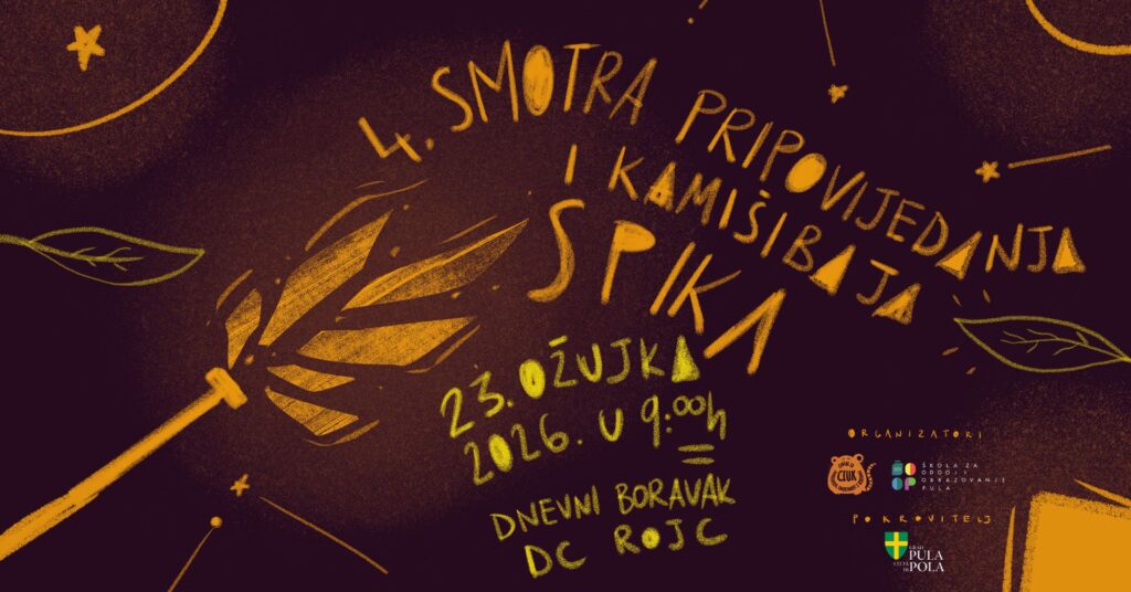 Otvaranje 4. SPIKE – Smotre pri­po­vi­je­da­nja i kami­ši­ba­ja, odr­žat će se 23. ožuj­ka, u 9 sati u Dnevnom borav­ku Društvenog cen­tra Karlo Rojc.