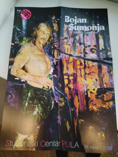 Otvorenje izložbe „Pejzaži zaborava“ u četvrtak 16. travnja u Galeriji Studentski bila je prigoda za bolje upoznavanje jednog od najznačajnijih živućih istarskih umjetnika – Bojana Šumonje, svojim Puležanima jednostavno „Bobo“. Naime, prije samog otvorenja upriličen je i opušteni razgovor s kolegom slikarom Denisom Sardozom u kojem je on sažeto i duhovito predstavio svoj umjetnički put. Prava šteta što među publikom nije bilo više studenata kojima je susret s ovim osebujnim umjetnikom u njihovom prostoru bio prvenstveno namijenjen, jer bi im sigurno bio inspirativan za životna traganja koja im predstoje.