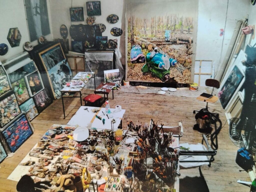 U posljednjem se pitanju Sardoz dotakao i Bojanove galerijske aktivnosti koju on nastavlja u Galeriji Poola u Kandlerovoj ulici, nakon što su se drugo dvoje osnivača, Tea Bičić i Robert Pauletta iz nekih svojih razloga povukli. Njemu je bilo žao to ostaviti i do danas u toj galeriji promiče kvalitetne mlade ili manje „vidljive“ autore, za što je i nagrađen „Crnim drvom Laube“ na sajmu Nesvrstani 2021. godine. „To me drži i daje snagu, pogotovo jer su mnogi mladi kojima smo organizirali prve izložbe danas afirmirani autori“, zaključio je razgovor Šumonja, preselivši se potom u prostor male galerije Studentski, na otvorenje izložbe, gdje je pojasnio izbor radova kojima je sažeo svoju noviju umjetničku produkciju. Najupečatljivija na izložbi je slika većeg formata „Crna šuma iz Loborike“, prva iz „Šumskog ciklusa“ na kojem radi posljednjih godina, nastaloj nakon jednog njegovog gljivarskog pohoda u šumu oko Loborike, kad je fotografirao nekoliko oborenih stabala. Na slici je dodao i fantazijske momente koje je obrazložio „Ovdje je jedan brončani majmun koji igra tenis s prozirnim štrumfom, kometa im je umjesto loptice, a Donald Duck je arbitar, …“