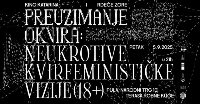 Kino Katarina: Preuzimanje okvira – Neukrotive kvirfeminističke vizije PULA ☝ 05.09. Film i kinematografija Manifestacije Vijesti Kino KatarinaMeđunarodni feminističi i queer festival Rdeče zore