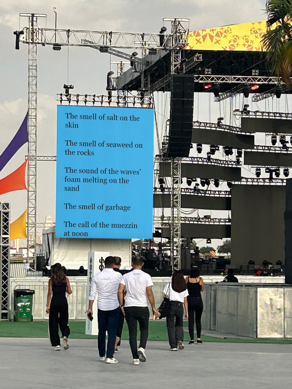 Osvrćući se na proteklo razdoblje kroz slike, zvukove, informacije i vijesti, Nathalie Harb stvara inventar proturječnih temporalnosti u formi multimedijalne dvokanalne video instalecije. Protekla godina djeluje i daleko i blisko, a oblikovao ju je genocid u Palestini, rat u Libanonu, neofašizam Trumpove vlasti koji je poništio desetljeća napretka. – kaže Harb. Živeći izvan Libanona, bila sam rastrgana između osobnih i globalnih vremenskih ciklusa.